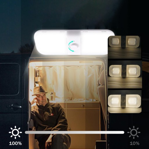✅【Możliwość przyciemniania】: można regulować jasność trzech kolorów. Naciśnij przycisk, aby zmienić temperaturę barwową. Pokrętło do regulacji jasności. To oświetlenie wewnętrzne do samochodów kempingowych spełnia różne wymagania oświetleniowe w różnych scenariuszach.