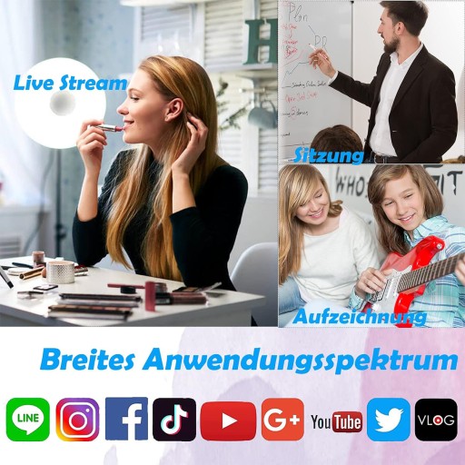 Szeroka kompatybilność obsługi transmisji na żywo na różnych platformach. Zaprojektowany dla Facebooka, YouTube, TikTok, Zoom Conference, Wywiad, Podcast, Vlog i innych platform social media i transmisyjnych.