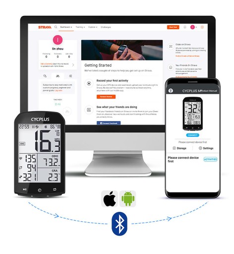Wygodny i niezwykle wytrzymały licznik rowerowy CYCPLUS M1 GPS to niezbędne wyposażenie każdego, kto pasjonuje się kolarstwem - zarówno zawodowo jak i amatorsko. Jedno urządzenie pozwoli ci monitorować statystyki jazdy, rejestrować trasę przejazdów oraz (po podłączeniu urządzeń peryferyjnych) monitorować tętno, kadencję i moc. Wszystko to dzięki wbudowanym modułom GPS, Bluetooth oraz ANT +.