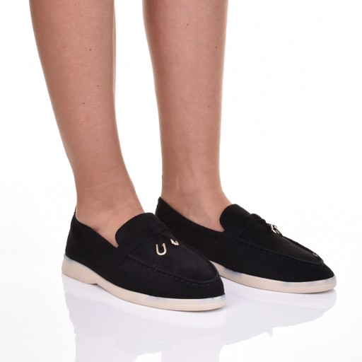 MODNE PÓŁBUTY DAMSKIE MOKASYNY ZAMSZOWE CZARNE