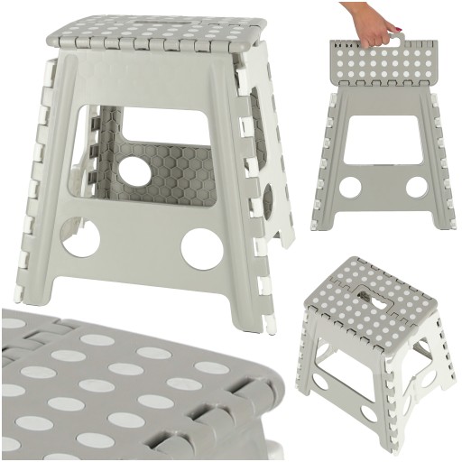 STOŁEK TABORET SKŁADANY ANTYPOŚLIZGOWY WYSOKI 39CM JASNY SZARY