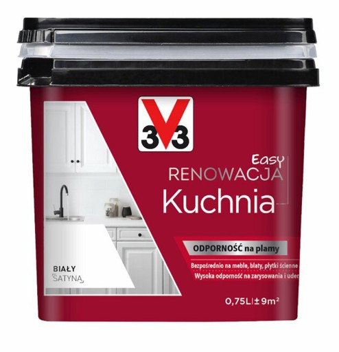 Farba do renowacyjnego malowania mebli kuchennych oraz kuchennych, ściennych płytek ceramicznych i sprzętów AGD. Bezpośrednio na podłoże, bez usuwania starych powłok, bez warstwy podkładowej. Powłoka charakteryzuje się wysoką odpornością na ciepło, zadrapania, uderzenia, wodę i wilgoć. Jest łatwa w utrzymaniu, może być czyszczona za pomocą łagodnych środków myjących.Parametry:
