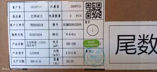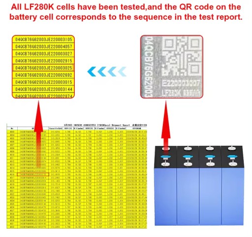 1. Ogniwa EVE 3,2 V LF280K 310+ Ah, kod QR jest oryginalny, klasa A, fabrycznie nowa.