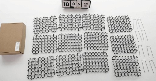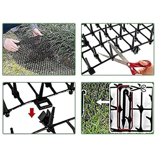☑️ Matę odstraszającą koty można z łatwością ułożyć w dowolnym miejscu. W razie potrzeby można przyciąć pasek samoprzylepny nożyczkami do żądanego rozmiaru i używać go, jest to bardzo wygodne. 8 kotew gruntowych w kształcie litery U mocuje matę odstraszającą koty do podłoża podłoga.