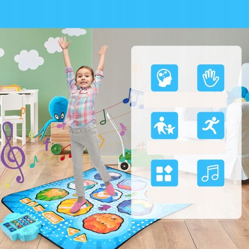 - Zaprojektowana z 9 uroczych elementów zwierzęcych i marzycielskiego niebieskiego tła, ta mata do tańca jest atrakcyjna wizualnie dla dziewcząt i chłopców.