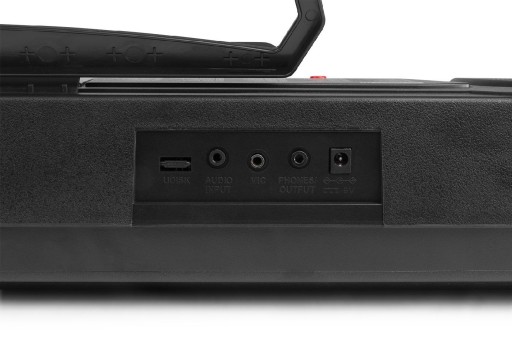 Keyboard KB1 marki MAX. Instrument nadający się do nauki dla początkowej jak i już zaawansowanej osoby grającej na instrumencie klawiszowym. Posiada 61 klawiszy oraz czytelny wyświetlacz, który pozwala swobodnie wybierać dostępne opcje dla tego instrumentu. Instrument posiada dwa gniazda 5mm Jack, które służą do podłączenia słuchawek oraz mikrofonu dzięki czemu możemy również śpiewać. Bardzo łatwy dostęp do różnych funkcji z górnego panelu instrumentu.
