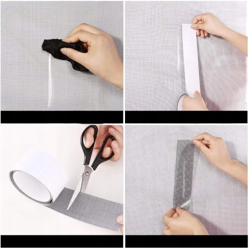 ☑️Ciepła uwaga: przed naprawą należy utrzymywać okno lub drzwi w czystości i suchości, aby uzyskać lepszą przyczepność. W niesprzyjających warunkach pogodowych taśmę naprawczą do ekranu można przykleić z dwóch stron