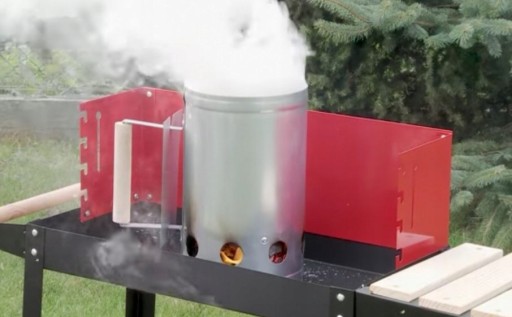 Komin od góry wypełnij brykietem. W dolnej części umieść papier bądź rozpałkę, podpal je i odczekaj do rozżarzenia węgli, a następnie wysyp je na palenisko grilla/wędzarni. Konstrukcję należy umieścić na niepalnym, stabilnym, płaskim podłożu na świeżym powietrzu (np. na ruszcie od grilla).