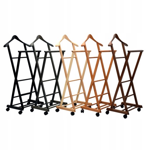 ✔️Drewniany kamerdyner na kółkach to stojak z wbudowanym szerokim wieszakiem przeznaczonym do wieszania koszul, marynarek czy sukienek.
