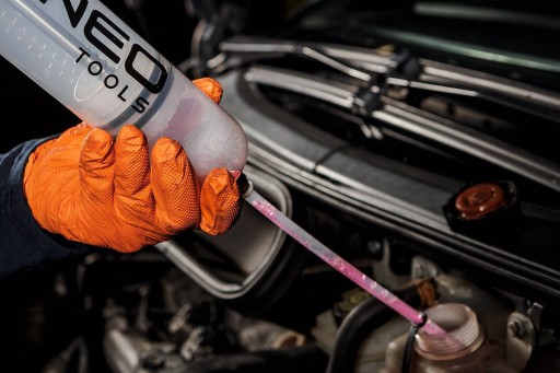 Wielozadaniowa strzykawka do płynów eksploatacyjnych o pojemności 200 ml marki NEO to narzędzie, które będzie przydatne w usuwaniu substancji takich jak np. płyn hamulcowy, płyn chłodniczy, olej przekładniowy czy płyn do wspomagania układu kierowniczego. Strzykawka wykonana została z trwałego połączenia PP + PCV, dzięki czemu jest wytrzymała oraz niezawodna.