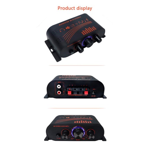 [Przenośny]: przenośny wzmacniacz samochodowy 12 V, łatwy do przenoszenia i instalacji. Możesz umieścić go w pojeździe lub zabrać do różnych pomieszczeń, aby cieszyć się muzyką w dowolnym miejscu.