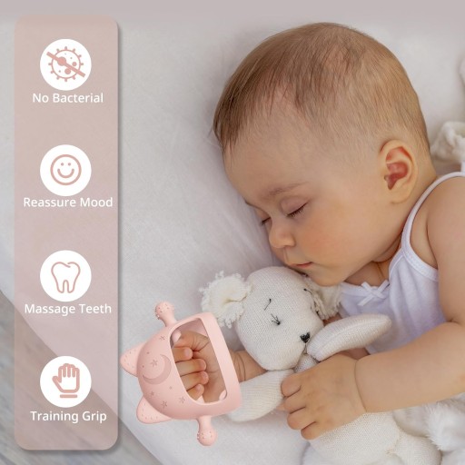 【Ząbkujące zabawki dla niemowląt 0-6 miesięcy】 Ząbkowanie dziecka jest specjalnie zaprojektowane dla noworodków, ząbkowanie przyniesie dyskomfort dziecku, ta ząbkowana zabawka ma cząsteczki masujące na części brodawki sutkowej i górze, aby dostosować się do ukąszenia dziecka w różnych kierunkach, pomaga złagodzić ból ząbkowania poprzez pocieranie i ciągnięcie, łagodzi niespokojny płacz dziecka, masaż dziąseł pomaga stymulować wzrost dziąseł i zębów.