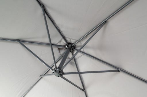 - Wytrzymała konstrukcja na podmuchy wiatru i obciążenie czaszy parasola składająca się z żeber stalowych.