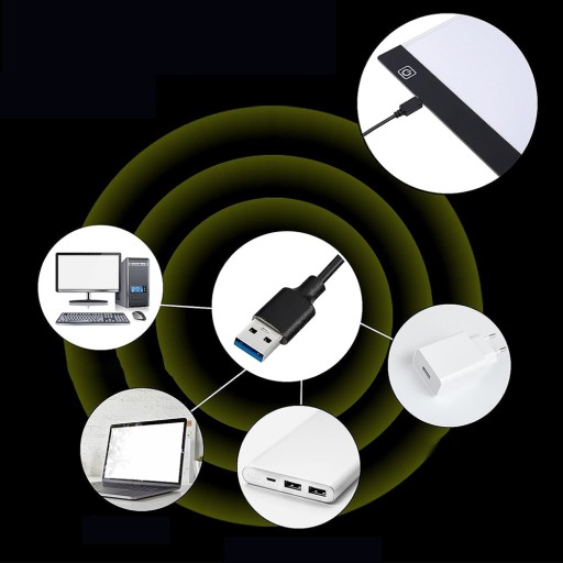 🖌️ Podkładka świetlna A4 wykorzystuje kabel USB do podłączenia do źródła zasilania i może łatwo uzyskać dostęp do dowolnego portu USB, takiego jak ładowarka USB, komputer, laptop lub mobilny zasilacz.