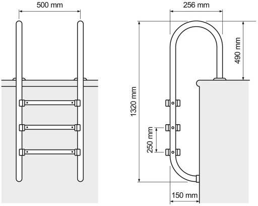 Drabinka do basenu ze stali nierdzewnej 3 stopnie 1320 mm