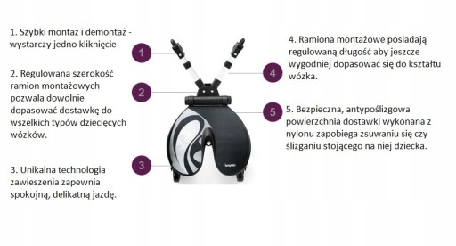 - Dostawka jest uniwersalna - pasuje do 100% wózków i spacerówek na rynku! (wg. producenta)