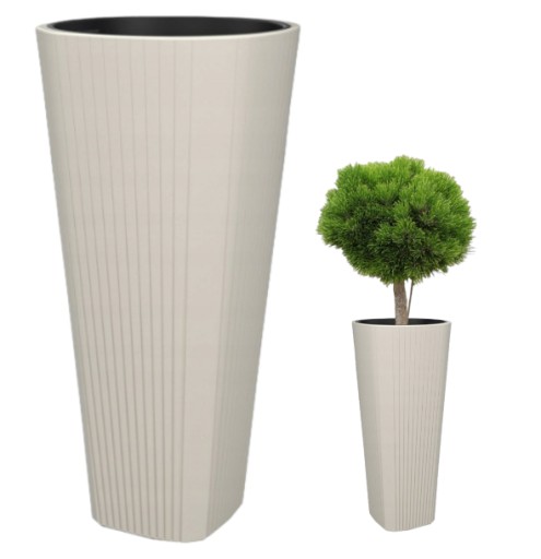 DONICA Z WKŁADEM DUŻA WYSOKA DONICZKA KREMOWA OGRODOWA KWIETNIK PLASTIKOWA