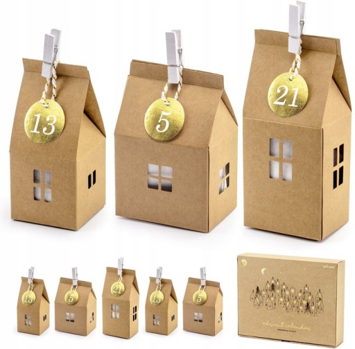 Kalendarz adwentowy 24 DOMKI KRAFT papierowe