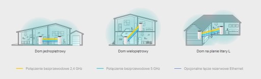 i opcjonalne łącze rezerwowe Ethernet łączą jednostki Deco, zapewniając jeszcze szybszą sieć