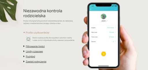 - Możliwości: Tryb routera / punktu dostępowego, Opcjonalne łącze rezerwowe Ethernet, Sieć dla gości, Technologia TP-Link Mesh