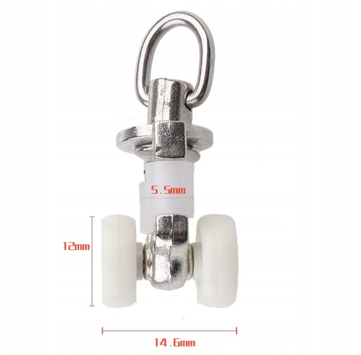 Średnica koła 12 mm, szerokość zewnętrzna 14,6 mm, pasuje do wewnętrznego rozstawu kół 16-20 mm, szerokość osi wewnętrznego rozstawu kół 5,5-7,5 mm