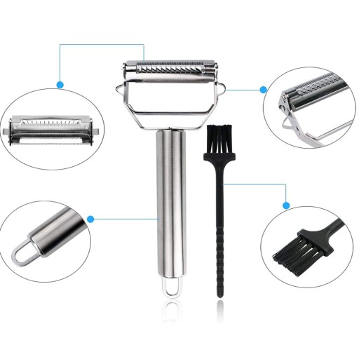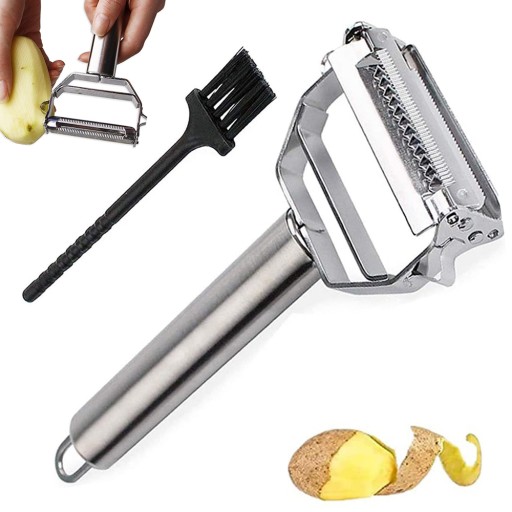 - 🥒 - Wykonane z najwyższej jakości stali nierdzewnej i ostrych jak brzytwa ostrzy o konstrukcji zapobiegającej przecięciu. Używaj go płynnie, obieraj szybko i bezpiecznie.