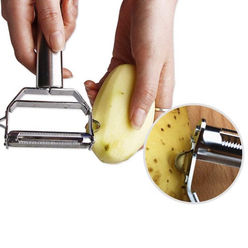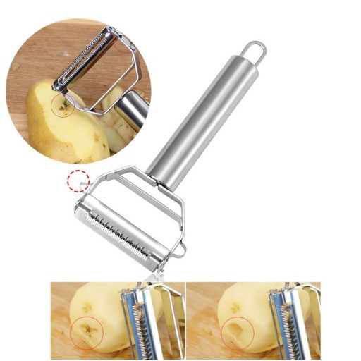 - 🥒 - Konstrukcja 2 w 1 z dwiema funkcjami, obierania i tarcia. Podczas obierania ziemniaków możesz również użyć boku do wykopania pąków.