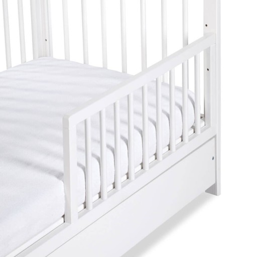 Opis produktu:wymiar:wewnętrzny: 120 x 60 cmzewnętrzny: 124 x 65 x 86 cmwysokość dna (od podłoża):54 cm39 cm24 cmmalowany MDF + drewno sosnoweCechy i funkcje:3 poziomy wysokości dna łóżeczkaWyciągane szczebleNakładki ochronne na górną listwęLakierowane wodnymi farbami ekoDrewno sosnowe wyselekcjonowane zostaje już na etapie cięcia w tartaku, dzięki czemu przyjeżdża tylko oznaczone gatunkiem pierwszym Kolejnym etapem selekcji zajmują się już nasi zaufani ludzie zatrudnieni na stanowisku technologów drewna, którzy bardzo rygorystycznie wybierają idealne elementy do stworzenia barierki ochronnej, dna i boku łóżeczka.“Gryzaki” na boku łóżka:Wiemy dobrze jakie hobby ma ząbkujące dziecko i tego zachowania nie w stanie zmienić Jedyne co możemy zrobić to dać rodzicom pewność, że łóżko przetrwa długie lata i będzie mogło służyć kolejnym pokoleniom.Barierka ochronna:Wyszukanych pozycji, w jakich śpią kilkuletnie dzieci, mógłby pozazdrościć niejeden gimnastyk czy akrobata Widok klęczącego dziecka podczas snu, z nogami na podłodze, czy odwróconego o 180 stopni, nie są dla wielu rodziców niczym dziwnym Barierka odegra tu swoją rolę idealnie i zapewni ochronę podczas snu dla małego przedszkolaka Jej odpowiednia wysokość oraz łagodnie zaokrąglone szczeble zapewnią bezpieczny sen największym wiercipiętom Sprzedawana w komplecie z łóżkiem dziecięcym, oszczędzi sporo czasu i pieniędzy, ponieważ rodzice nie są zmuszeni do poszukiwań często nieoryginalnego i niepasującego produktu Tak sprawdzona barierka w połączeniu z montażem 3-punktowym idealnie chroni dziecko podczas snu.Bok łóżka:Wykonany w 100% z drewna sosnowego pochodzącego z polskich lasów.Dno łóżka:Między listwami dna znajdują się wolne przestrzenie dzięki czemu powietrze może cyrkulować cały czas Łatwość obiegu powietrza w materacu przede wszystkim pozwoli utrzymać jego higienę, a także zachowa jego właściwości Wykonany w 100% z drewna sosnowego pochodzącego z polskich lasów Element ten jest chyba najbardziej narażony na obciążenia Intensywne zabawy w łóżeczku muszą odbywać się bez niespodzianek, dlatego zadbaliśmy o to żeby dno wytrzymało długie lata Nasze rozwiązanie przypomina to zastosowane w bokach, gdzie listwy osadzone są w przeznaczonym dla niej otworze, a połączenie odbywa się za pomocą kleju oraz zszywki