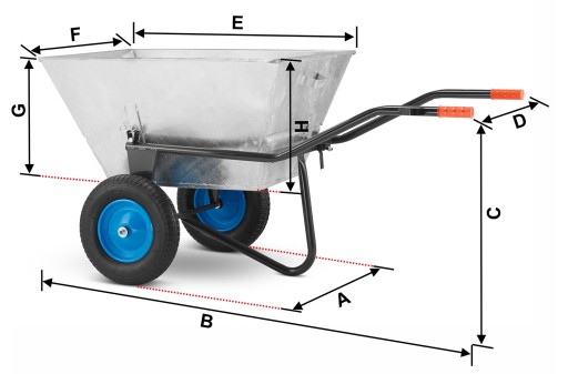 Rączki koleby są zaprojektowane w taki sposób, aby zapewnić wygodny chwyt i umożliwić naturalne ułożenie dłoni użytkownika podczas prowadzenia taczki. Ergonomiczny design pozwala na zmniejszenie napięcia mięśni i zapobiega uczuciu dyskomfortu podczas długotrwałego użytkowania. Uchwyty wyposażone są w antypoślizgową powierzchnię, która zapewnia pewny chwyt. To wpływa na większą stabilność i kontrolę nad taczką, co przekłada się na bezpieczeństwo użytkownika. Dla właściwego zbalansowania i odciążenia użytkownika została zastosowana specjalna konstrukcja z przesuniętym środkiem ciężkości do przodu, aby jak najłatwiej i jak najmniejszym wysiłkiem móc przewozić towar.