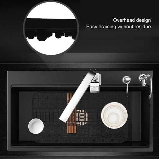 4. ŁATWE W CZYSZCZENIU: Matę do zlewu można bezpośrednio spłukać lub umieścić w zmywarce, co ułatwia czyszczenie. Wystarczy umyć ją bezpośrednio wodą, aby utrzymać matę w czystości i higienie.