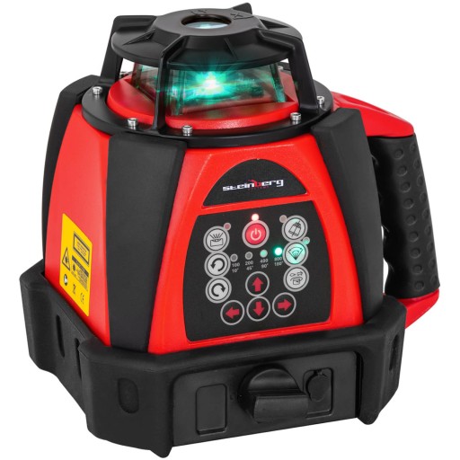 Laser obrotowy cechuje się doskonałą widocznością linii dzięki nadajnikowi o wysokiej intensywności. Emituje on zielony laser 2 klasy a wiązka jest jasna i wyraźna. Długość fali lasera to 520 nm. Z kolei zasięg widoczności to Ø40-50 m, a przy użyciu detektora nawet Ø500 m. Urządzenie samo się poziomuje w zakresie ±5. Dokładność lasera obrotowego wynosi ±20 w pionie i poziomie. Produkt posiada klasę ochrony IP54, jest więc wodoodporny. Dołączone akcesoria zapewniają wygodę korzystania z urządzenia.