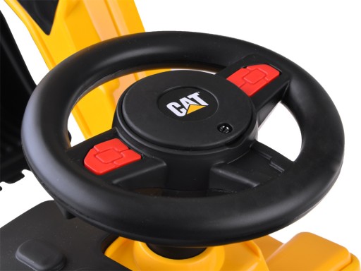 Licencjonowana koparka jeździk CAT została stworzona z myślą o dzieciach w wieku od 1 do 3 lat. Jej atrakcyjny design oraz odpowiednie dla dzieci rozmiary przyciągają uwagę najmłodszych. Atrakcją w koparce jest ruchoma łyżka, którą dzieci bez problemu mogą poruszać góra, dół oraz na boki. Na kierownicy znajduje się klakson, dzięki któremu mały kierowca będzie mógł sygnalizować o swojej pracy. Schowek pod otwieranym fotelem, pozwoli na przewiezienie niezbędnych akcesoriów na plac budowy. Dzięki antypoślizgowym kołom, pojazd sprawdza się zarówno na drewnianych podłogach, jak i na innych powierzchniach. Szerokie koła zapewniają płynną, bezpieczną jazdę. Z myślą o bezpieczeństwie dzieci, koparka została wyposażona w stabilne oparcie oraz system zapobiegający przewróceniu.