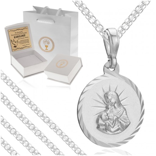 СЕРЕБРЯНАЯ ЦЕПЬ С МЕДАЛИТОЙ PR. 925 СУВЕНИРОВ ПЕРВОГО СВЯТОГО ПРИЧАСТИЯ + БЕСПЛАТНЫЕ ПОДАРКИ