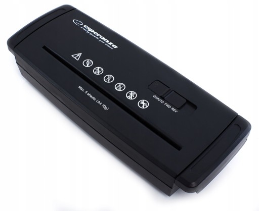 - Niszczy jednorazowo do 5 kartek formatu A4, z prędkością 3,5 m/min.