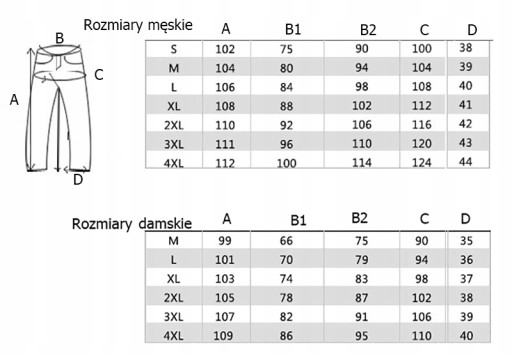 Dostępne rozmiary męskie i damskie