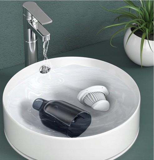 Czyszczenie jest bardzo wygodne i łatwe. Wystarczy kliknąć i odłączyć pojemnik na kurz. Następnie opróżniamy go, wyjmujemy filtr oraz płuczemy go wodą aż będzie czysty. Mocujemy wszystkie części z powrotem.
