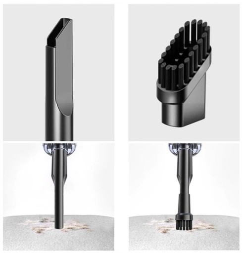 W zestawie oprócz odkurzacza znajdują się 2 wymienne końcówki: - szczotka do czyszczenia wrażliwych na zarysowania elementów i końcówka do trudno dostępnych, ciasnych miejsc.