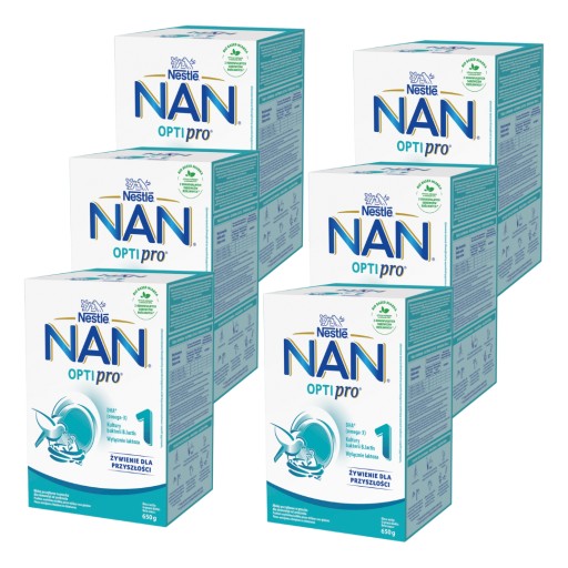 NAN OPTIpro® 1 to mleko początkowe opracowane z myślą o potrzebach niemowląt od urodzenia, które z róznych przyczyn nie mogą być karmione piersią. Jest odpowiednie także jako uzupełnienie karmienia piersią, jeśli zaistnieje taka potrzeba. NAN OPTIpro® 1 dostarcza Twojemu dziecku wszystkich składników pokarmowych niezbędnych do prawidłowego rozwoju. 60 lat badań nad mlekiem kobiecym zainspirowało ekspertów Nestlé do stworzenia unikalnej kompozycji NAN OPTIpro® 1, która zawiera: DHA* – niezbędny nienasycony kwas tłuszczowy z rodziny omega-3 *zawiera DHA (zgodnie z wymogiem prawnym dotyczącym wszystkich preparatów do początkowego żywienia niemowląt) B.lactis – kultury bakterii Wyłącznie laktozę – podstawowy cukier wystepujący w mleku kobiecym Oleje roślinne – słonecznikowy i rzepakowy Nie zawiera oleju palmowego Po zakończeniu karmienia mlekiem początkowym NAN OPTIpro® 1, skonsultuj z lekarzem kontynuację karmienia mlekiem następnym NAN OPTIpro® 2 dostosowanym do potrzeb żywieniowych niemowląt powyżej 6. miesiąca życia.