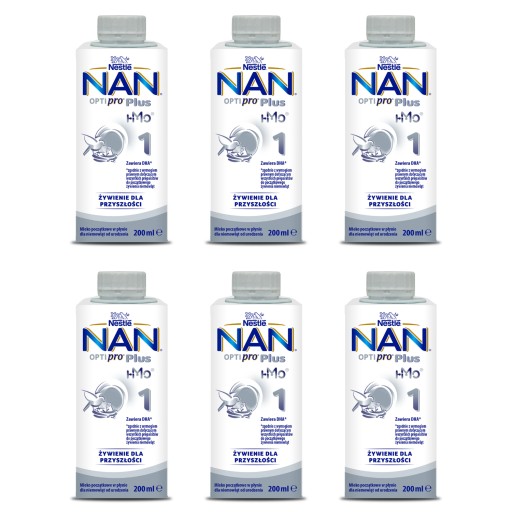 NAN OPTIpro® Plus 1 w płynie jest mlekiem początkowym przeznaczonym dla zdrowych niemowląt od urodzenia, które z różnych przyczyn nie mogą być karmione piersią. Zawiera DHA* (*zgodnie z wymogiem prawnym dotyczącym wszystkich preparatów do początkowego żywienia niemowląt).