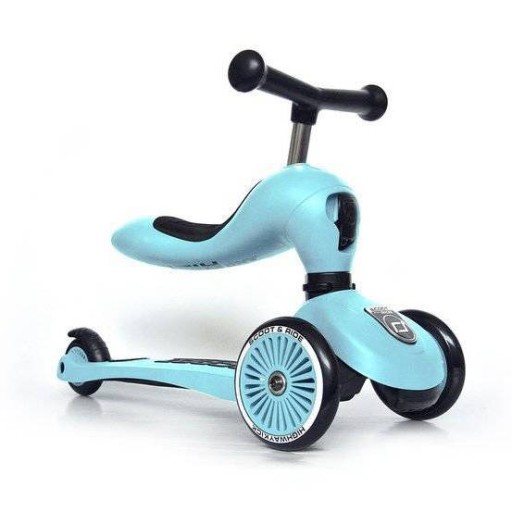 Bez używania narzędzi, za pomocą jednego guzika można w kilka sekund zamienić pojazd w hulajnogę na 3 kołach – obrócone siedzisko staje się jej przednią ramą. Wystarczy jeszcze przenieść kierownicę (montowana na klik) i gotowe! Teraz także starszak może rozpocząć swoją scaterską przygodę.