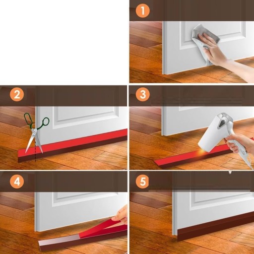 - Łatwy w montażu: Samoprzylepna listwa uszczelniająca do drzwi jest naprawdę łatwa w montażu. Najpierw oczyść kurz z powierzchni drzwi, do czyszczenia możesz użyć alkoholu lub wody. Jeśli na drzwiach znajduje się kurz, może to łatwo spowodować, że taśma uszczelniająca drzwi nie będzie dobrze przylegać. Gdy oczyszczone miejsce wyschnie, zmierz i odetnij odpowiednią długość. Następnie za pomocą dmuchawy gorącego powietrza podgrzej listwę uszczelniającą, a na koniec oderwij czerwoną folię i przyklej uszczelkę drzwi do drzwi.