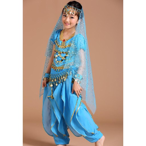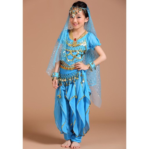 Kostium do tańca brzucha dla dzieci Moneta Top z frędzlami Harem Pant Zestaw chust na biodra