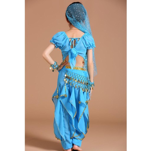 Zestaw kostiumów do tańca brzucha, w tym top, spodnie haremki, chusta na biodra i para opasek na nadgarstki