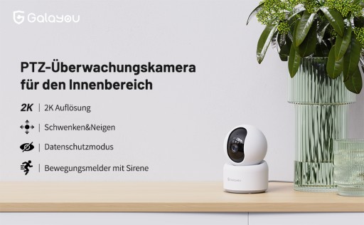 GALAYOU Kamera do monitoringu 2K wewnątrz, kamera WLAN IP, kamera do monitoringu wewnątrz, kamera dla psa, 360°, dwukierunkowe audio, elektroniczna niania z kamerą, współpracuje z Alexa i Google Home