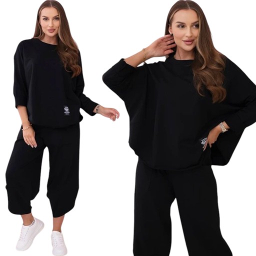 to połączenie elegancji i wygody, które idealnie pasuje do wielu okazji. Ta tkanina jest nie tylko miękka i przyjemna w dotyku, ale także pięknie się prezentuje. Bluza to doskonały element garderoby zarówno na co dzień, jak i na specjalne okazje. Możesz nosić ją solo lub zestawić z inną częścią garderoby, tworząc niezwykle stylowy outfit. Spodnie to doskonałe uzupełnienie kompletu. Ich luźny krój pozwala na swobodę ruchów, co sprawia, że są one nie tylko stylowe, ale także bardzo wygodne.