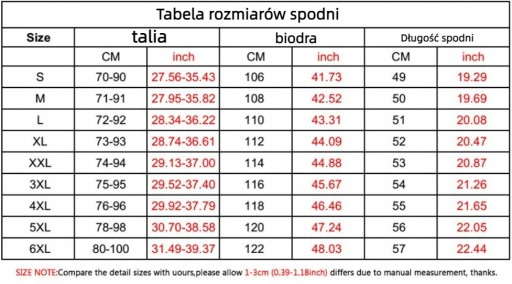 PROSIMY O WYBIERANIE ROZMIARU WEDŁUG TABELI