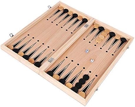 Zawiera drewnianą szachownicę oraz komplet starannie wykonanych figur szachowych i pionów do backgammona.