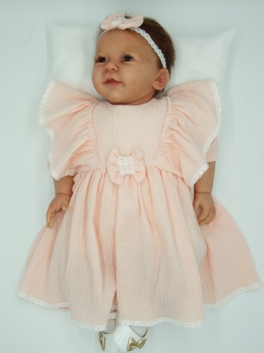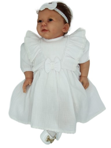 МУСЛИНОВОЕ КРЕСТИЛЬНОЕ ПЛАТЬЕ + ПОВЯЗКА НА ГОЛОВУ 74р*цвета*