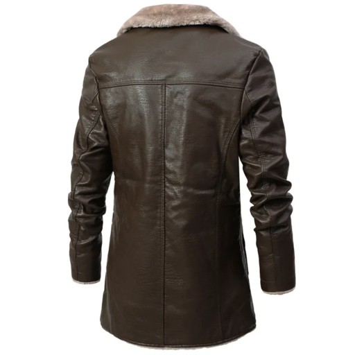 ELEGANCKI MĘSKI PŁASZCZ SKÓRZANY ZIMOWY JESIENNY