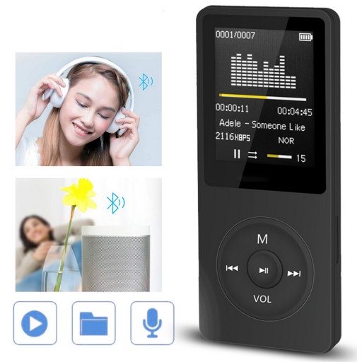 🎶Więcej funkcji: Radio FM, folder, Bluetooth, nagrywanie, obsługa ustawień, wideo, kalendarz, krokomierz, e-book, zdjęcie, wygaszacz ekranu czasu, powtarzanie A-B, odtwarzanie ze zmienną prędkością.
